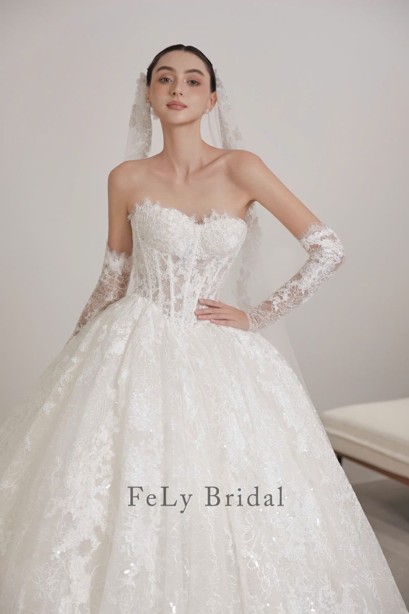 Nếu nàng muốn trải nghiệm chiếc váy cưới công chúa đúng chuẩn studio cao cấp, Fely Bridal chính là điểm đến lý tưởng. Đội ngũ chuyên viên tư vấn sẽ giúp tìm được form váy, tỉ lệ tùng và phần cúp ngực phù hợp nhất.