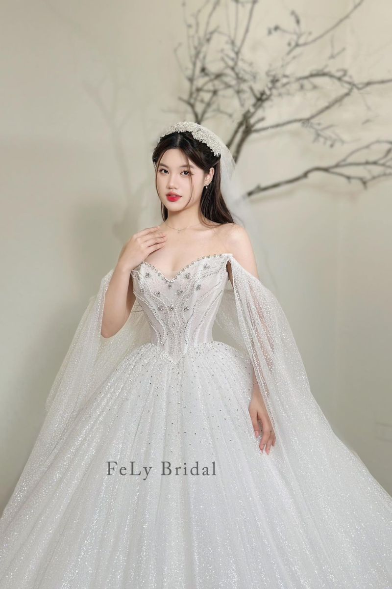 Tại Fely Bridal, mỗi chiếc váy đều có câu chuyện. Không chỉ là sản phẩm mà là người bạn đồng hành trong ngày cưới. Illumina Pearl được sinh ra cho khoảnh khắc thiêng liêng ấy, khi cô dâu bước đi chậm rãi, khi ánh mắt rạng ngời, khi mọi yêu thương lắng lại. Nếu bạn đang tìm một chiếc váy công chúa tinh tế, không ồn ào, không đại trà, váy cưới công chúa Illumina Pearl là một lựa chọn rất đáng để thử.
