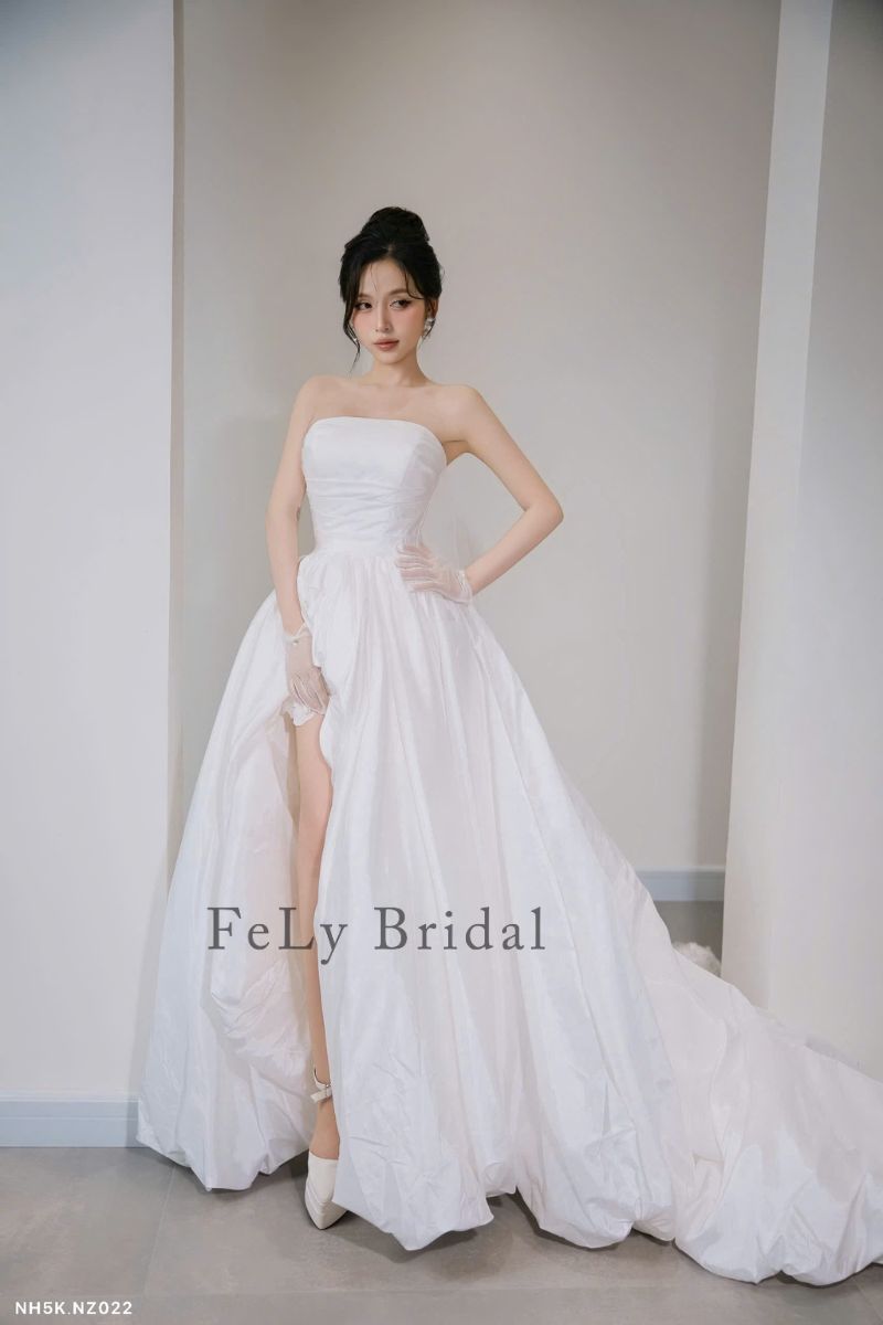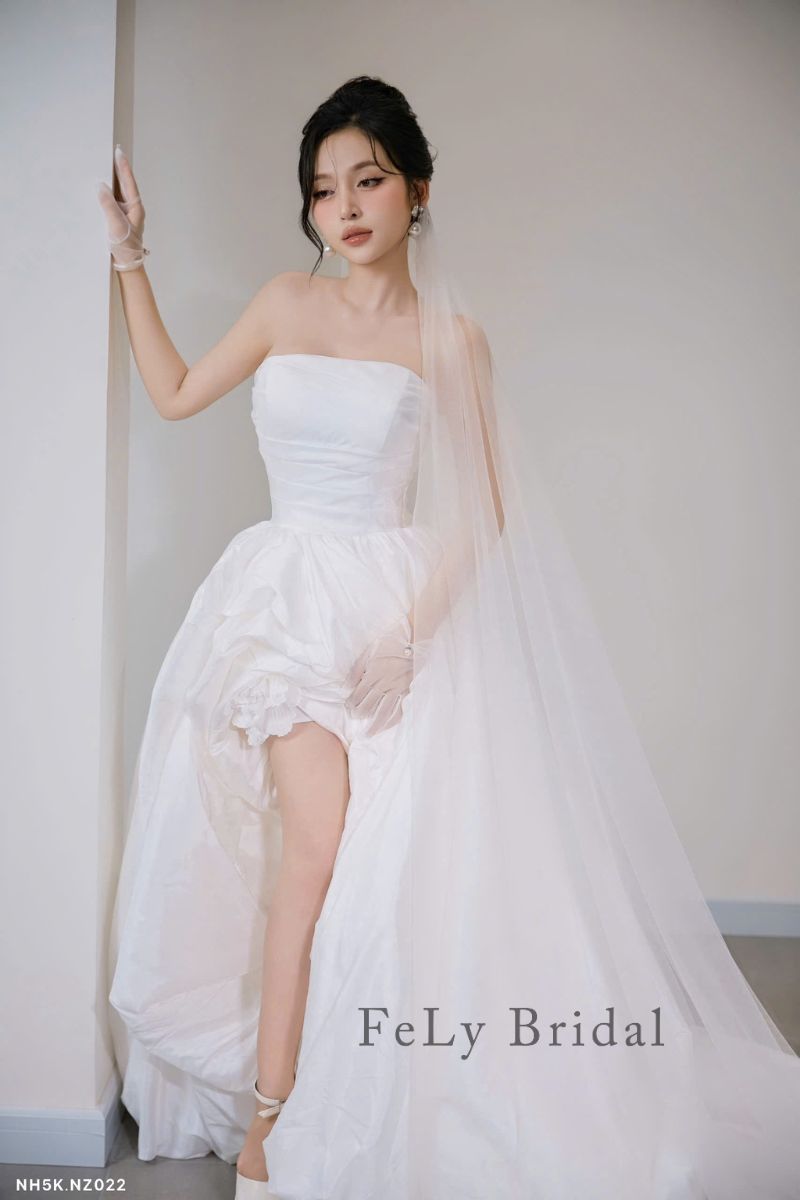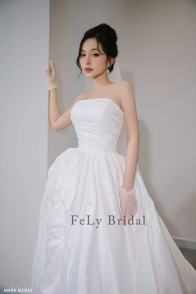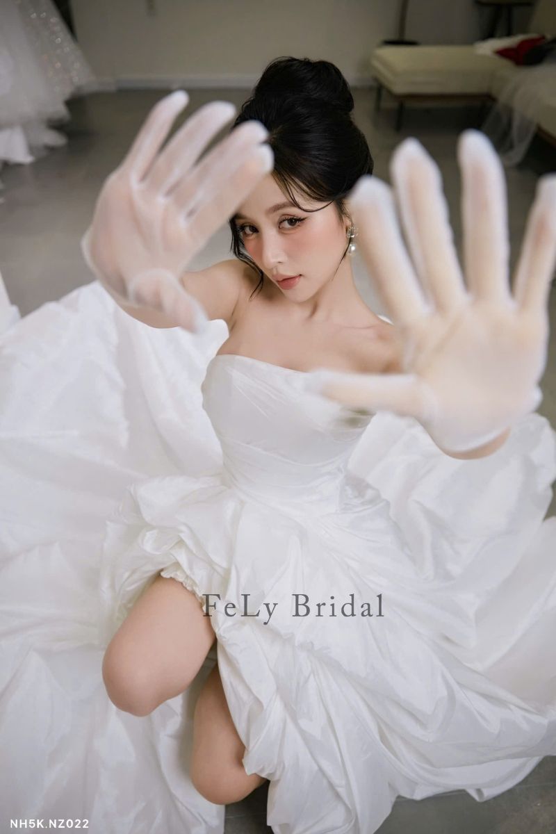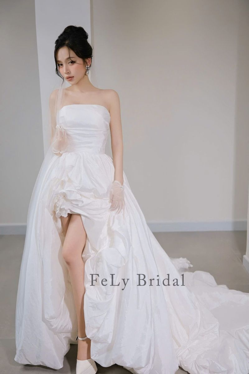 Đừng chần chừ, hãy thử ngay mẫu Váy cưới ngắn satin phối bèo nhún độc đáo. Liên hệ với Fely Bridal để được tư vấn và đặt lịch thử váy ngay hôm nay!